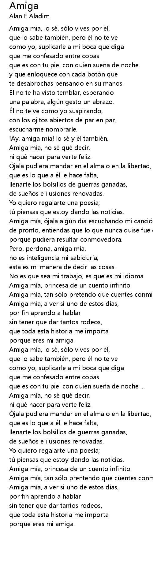 | [02:09.33] | Amiga mi a, tan so lo pretendo que cuentes conmigo. |