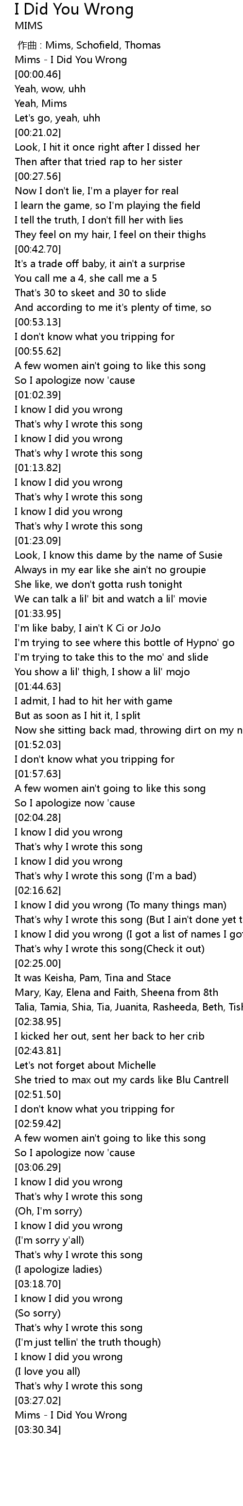 | [02:21.09] | I know I did you wrong (I got a list of names I gotta go add) |