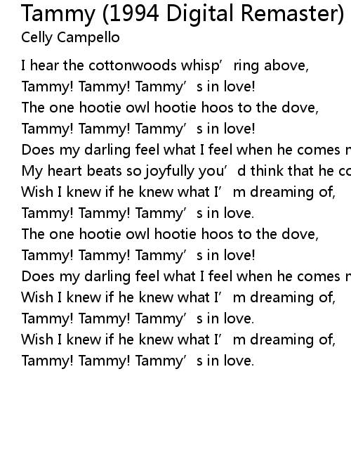 | [02:52.81] | Tammy! Tammy! Tammy’s in love. |