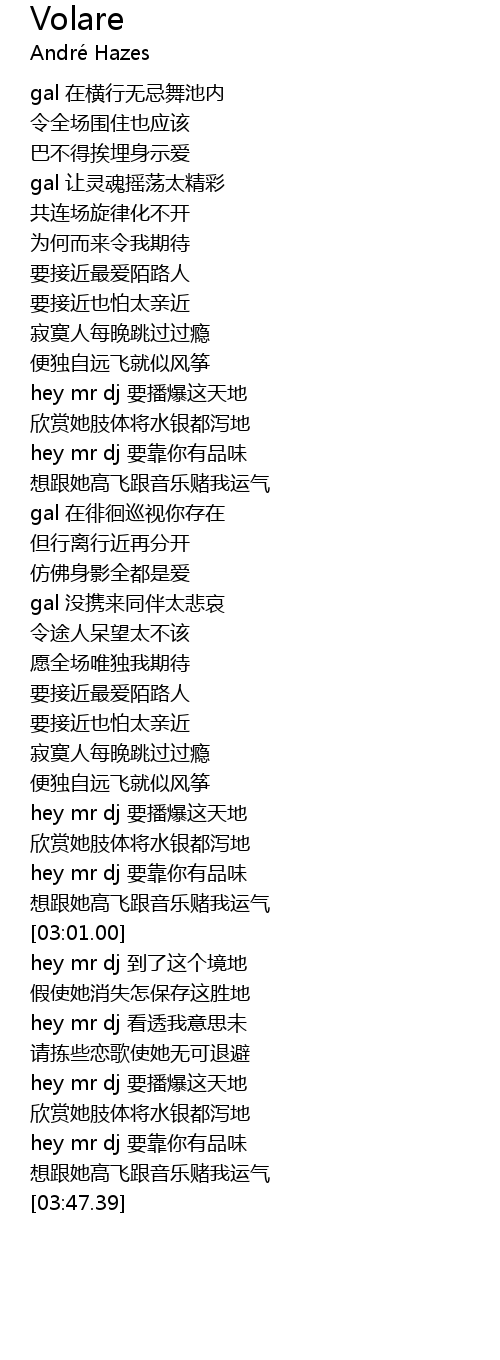 | [03:23.93] | hey mr dj 看透我意思未 |