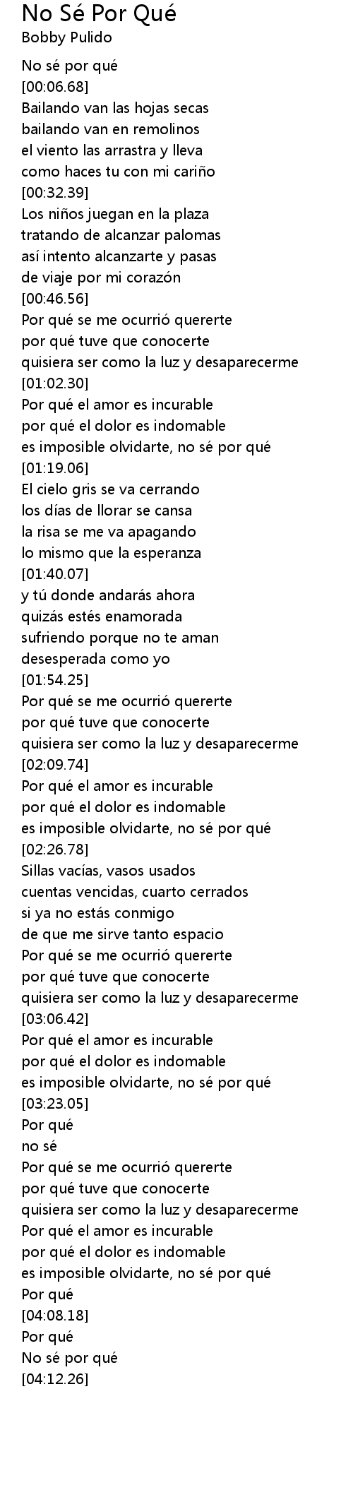 | [03:59.50] | es imposible olvidarte, no sé por qué |