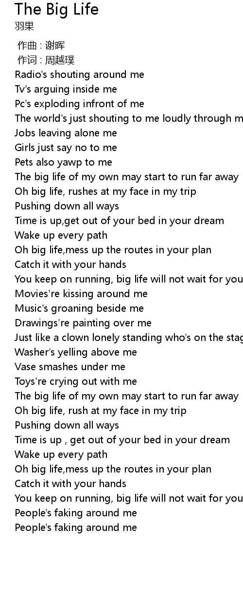 | [02:52.47] | Oh big life, rush at my face in my trip |