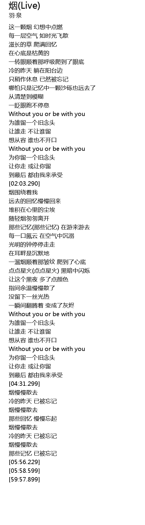 | [01:53.128] | Without you or be with you |