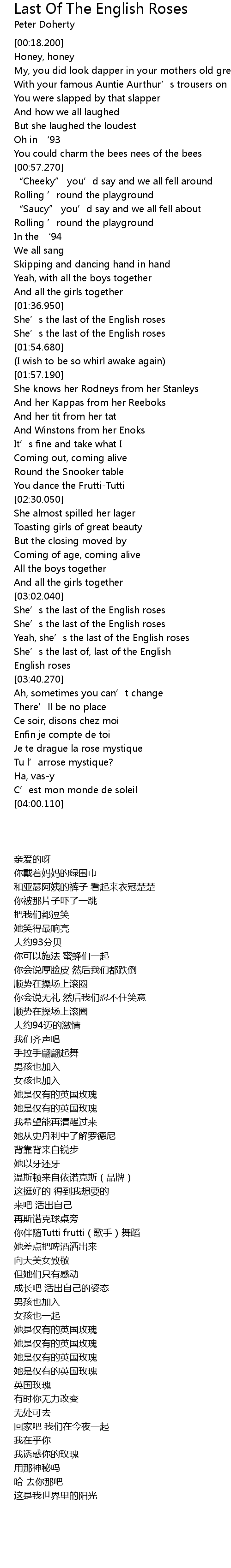 | [03:21.020] | Yeah, she' s the last of the English roses |