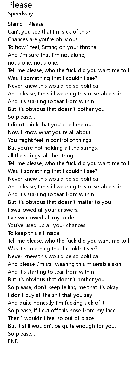 | [03:16.37] | And please I'm still wearing this miserable skin |