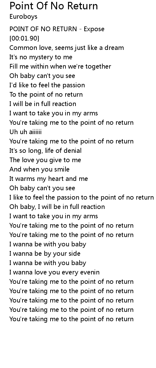 | [01:24.46] | I like to feel the passion to the point of no return |