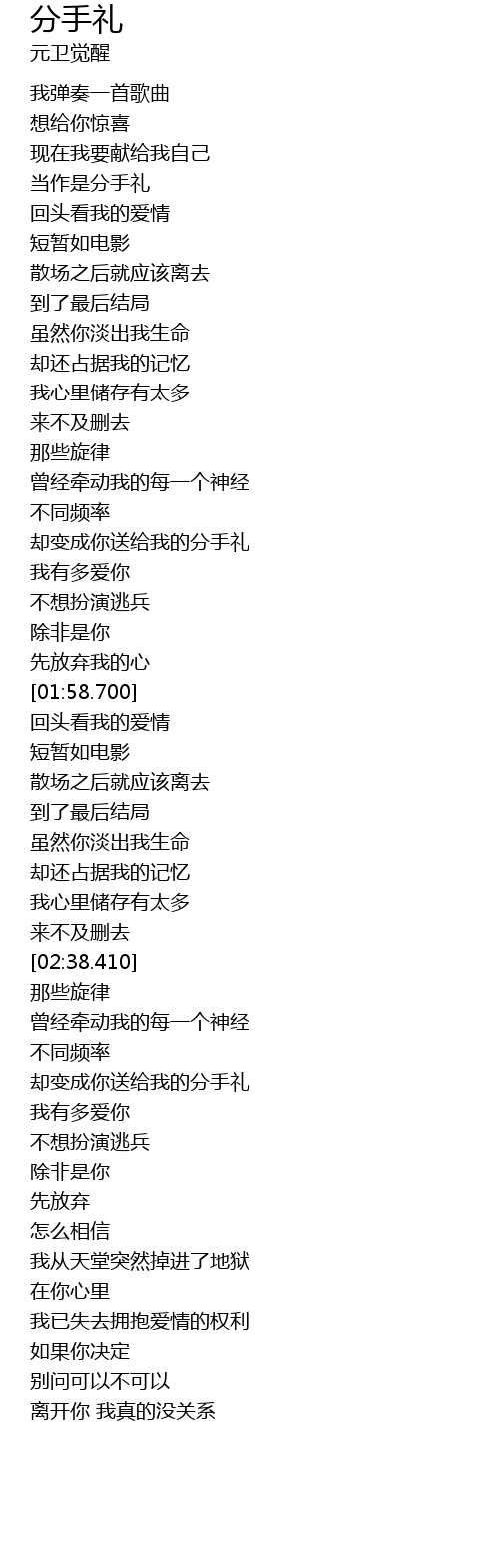 | [01:36.650] | 却变成你送给我的分手礼 |