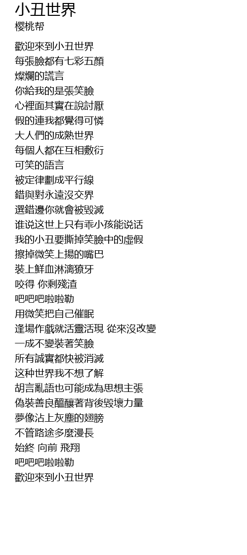 | [01:01.000] | 我的小丑要撕掉笑臉中的虛假 |