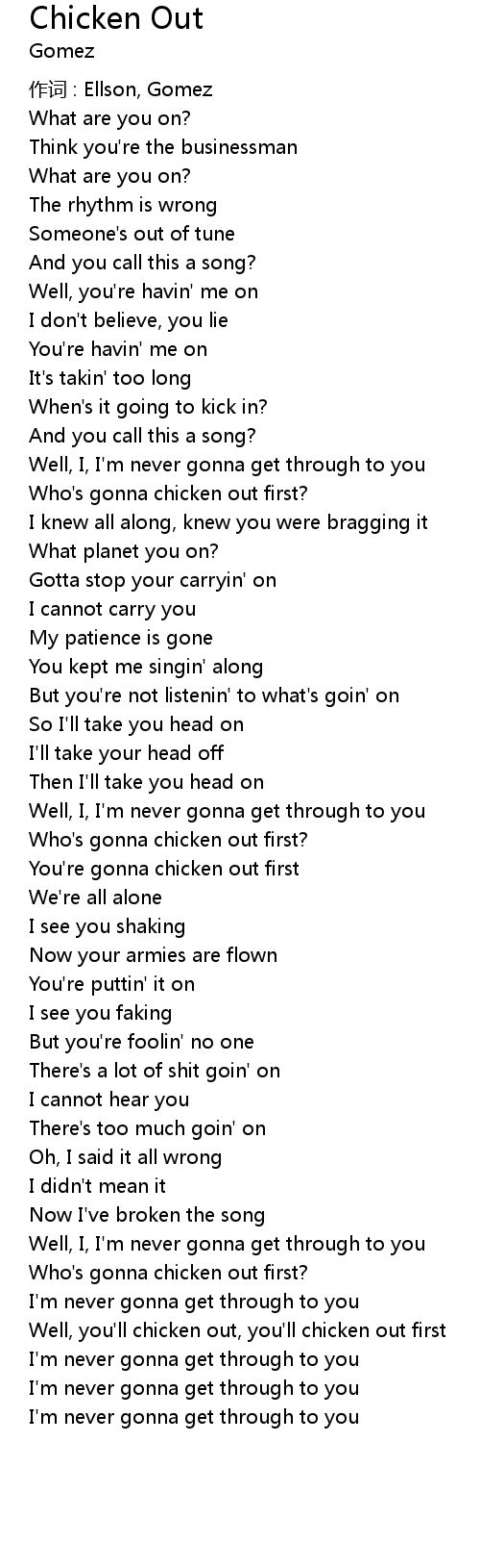 | Well, you' ll chicken out, you' ll chicken out first | |