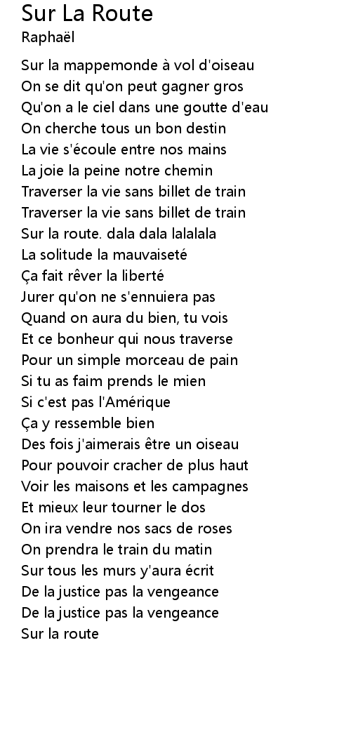 | Song | Sur La Route |