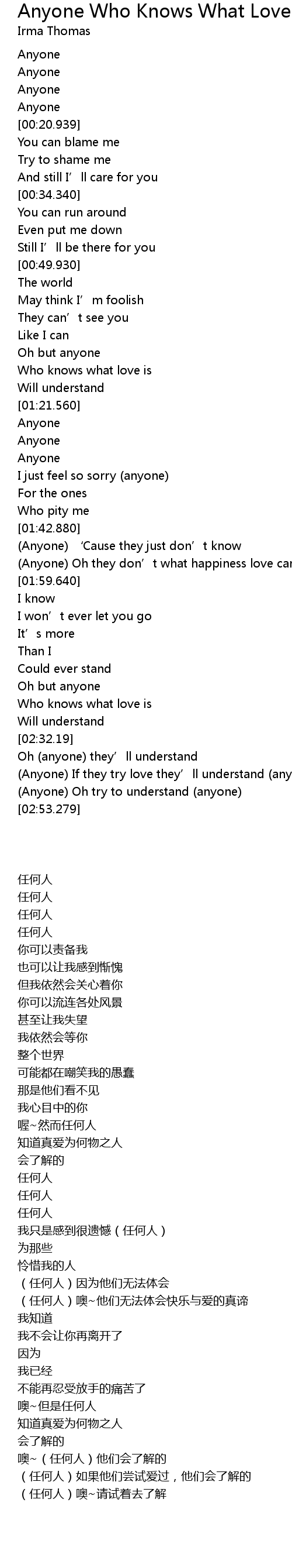 | [00:20.0] | Anyone |