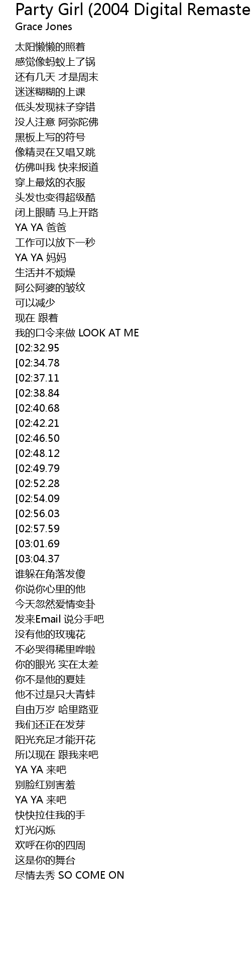 | [03:39.50][02:49.79][01:18.53] | tiao yi tiao xiao yi xiao BABY |