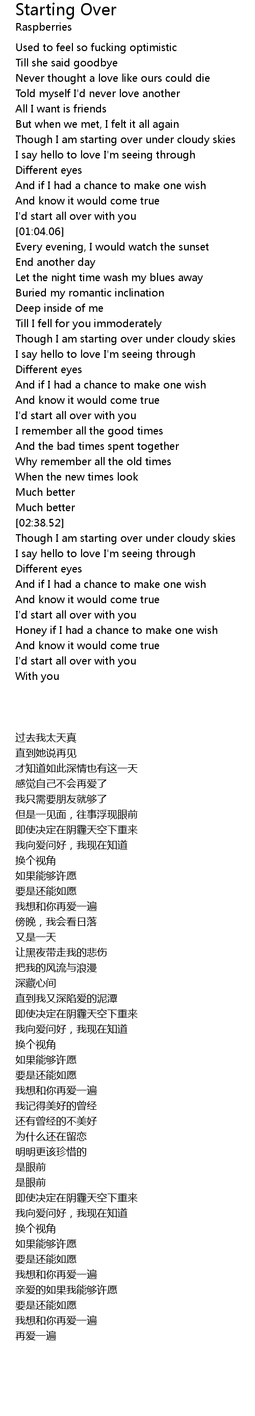 Though I am starting over under cloudy skies |
