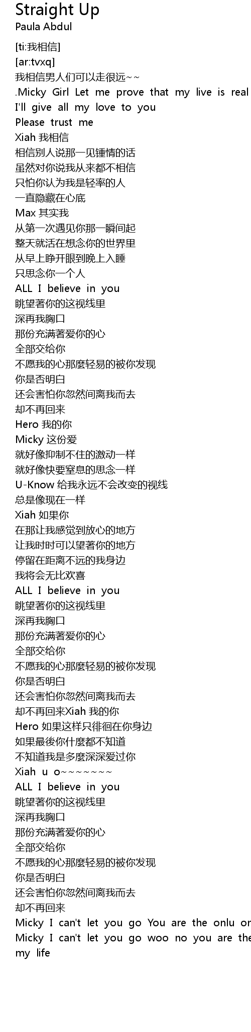| [04:22.345] | Micky I can't let you go You are the onlu one in my life |