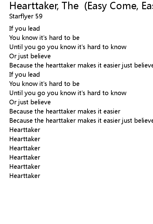 Hearttaker, The  (Easy Come, Easy Go Album Version) Lyrics