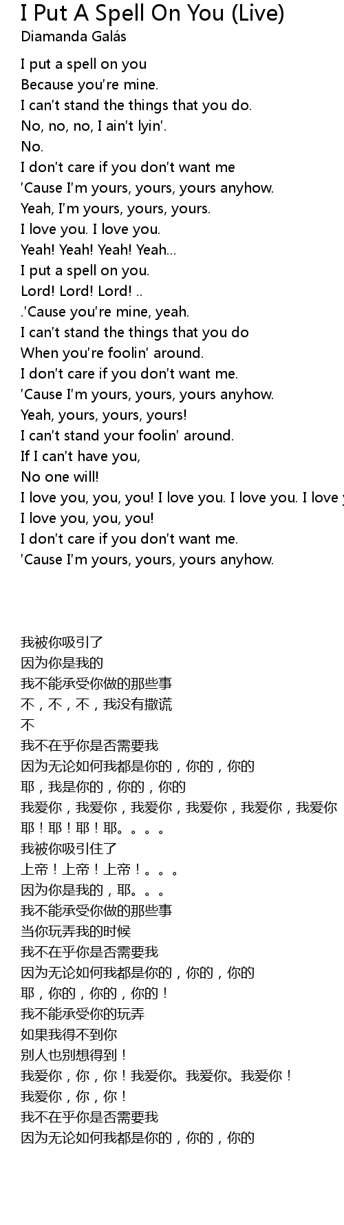 | [00:16.230] | I put a spell on you |