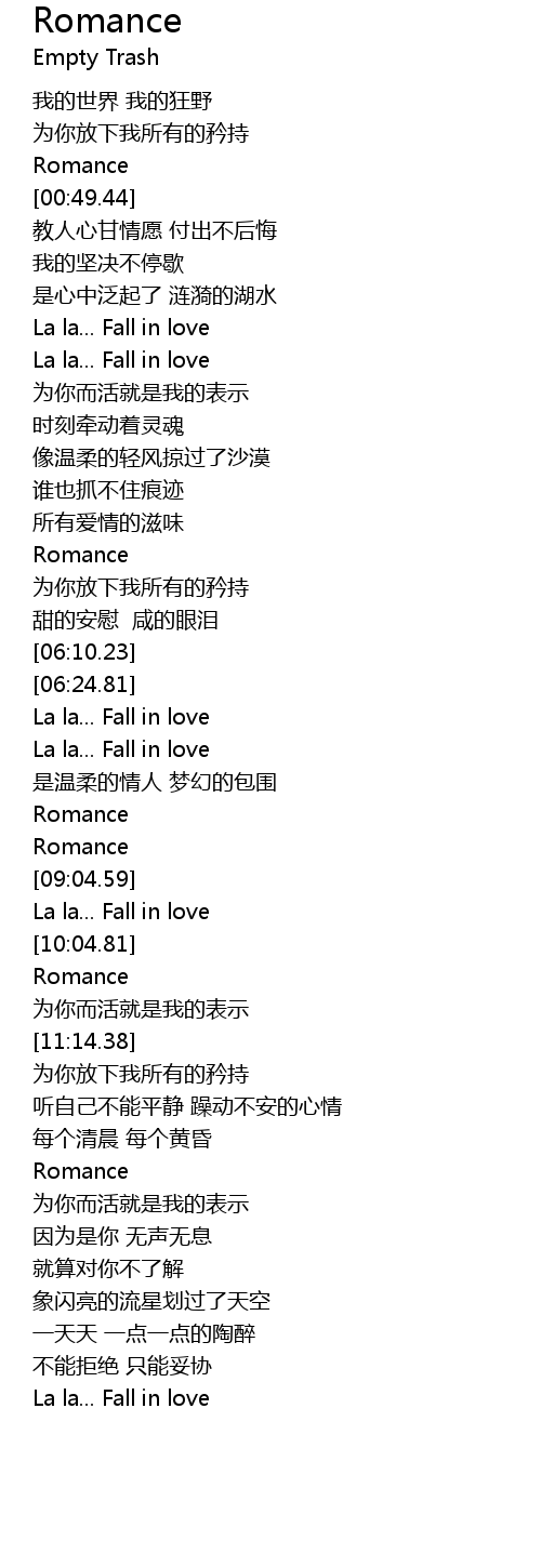 | [00:27.60] | wǒ de shì jiè wǒ de kuáng yě |