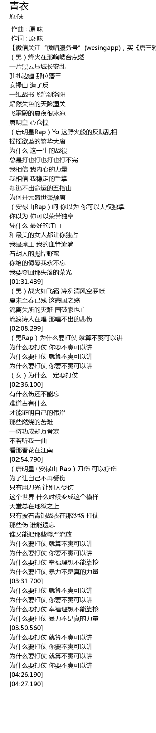| [02:55.440] | (唐明皇+安禄山 Rap)刀伤 可以疗伤 |