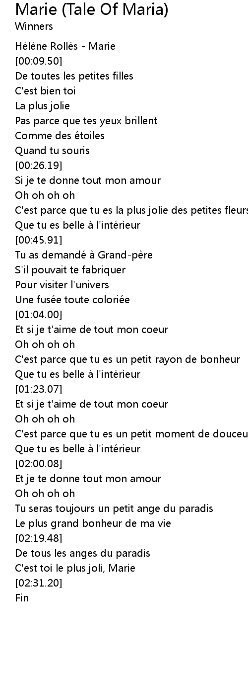 | [02:27.62] | C' est toi le plus joli, Marie |