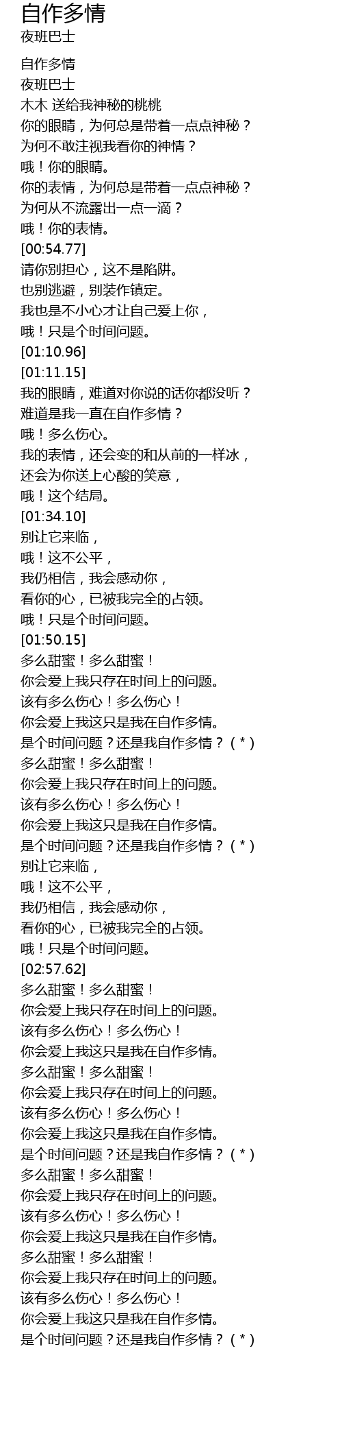| [02:22.41] | shì gè shí jiān wèn tí? hái shì wǒ zì zuò duō qíng? |