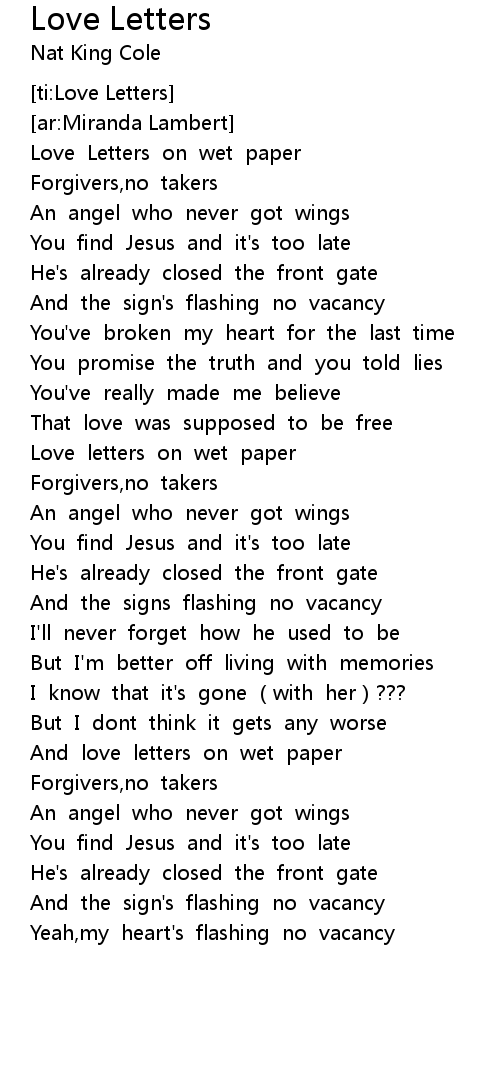 | [00:02.844] | Love Letters on wet paper |