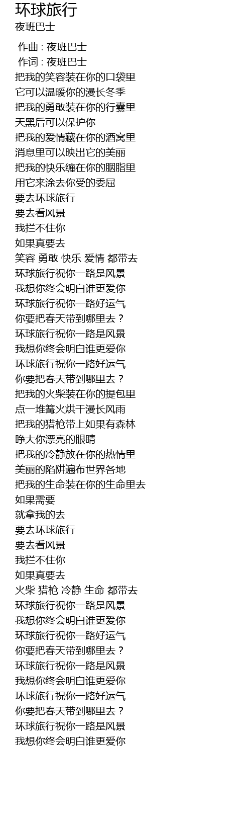 | [03:00.52] | 环球旅行祝你一路是风景 |