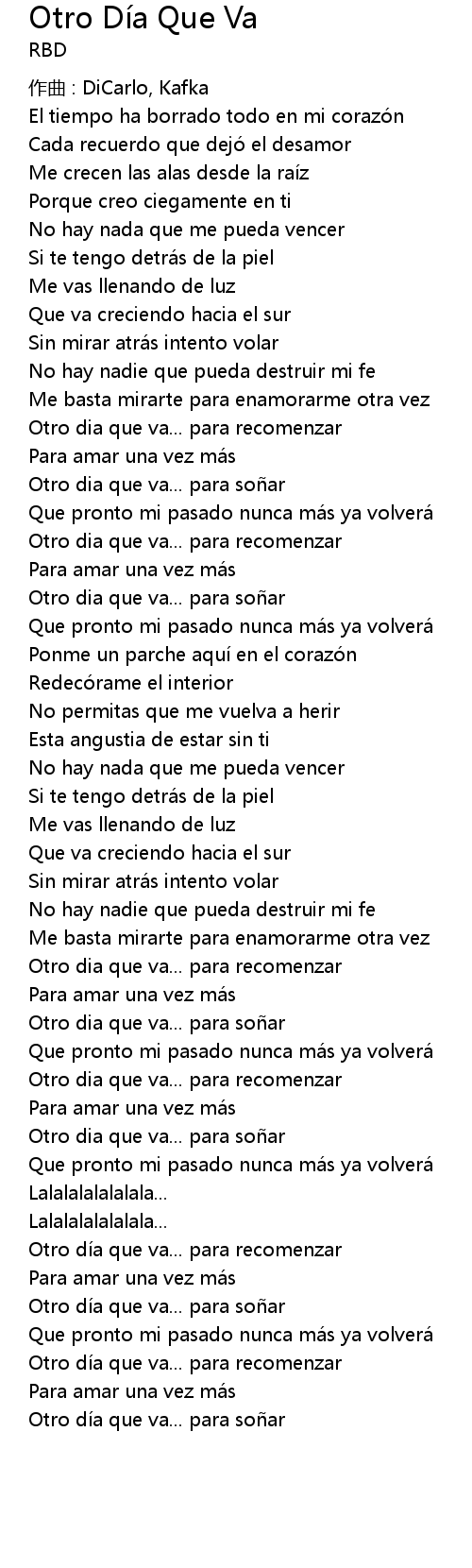 | Que pronto mi pasado nunca ma s ya volvera | |