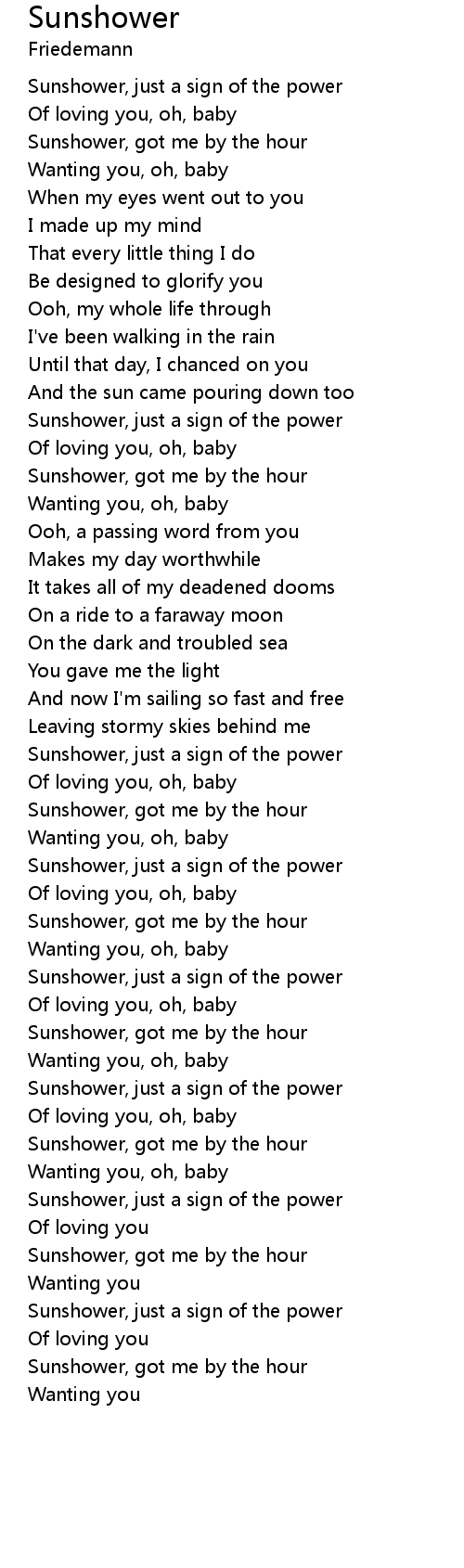 Sunshower, got me by the hour |