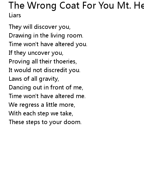| Song | The Wrong Coat For You Mt. Heart Attack |