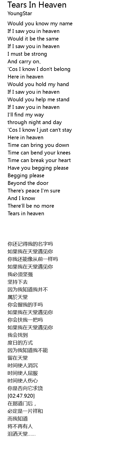 | [02:01.130] | ' Cos I know I just can' t stay |