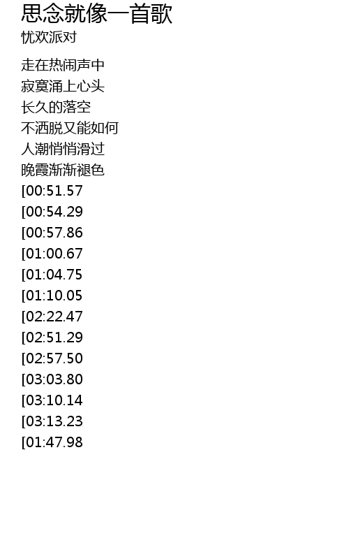 | [03:22.59][02:51.29][01:20.32] | 思念就像一首歌 |