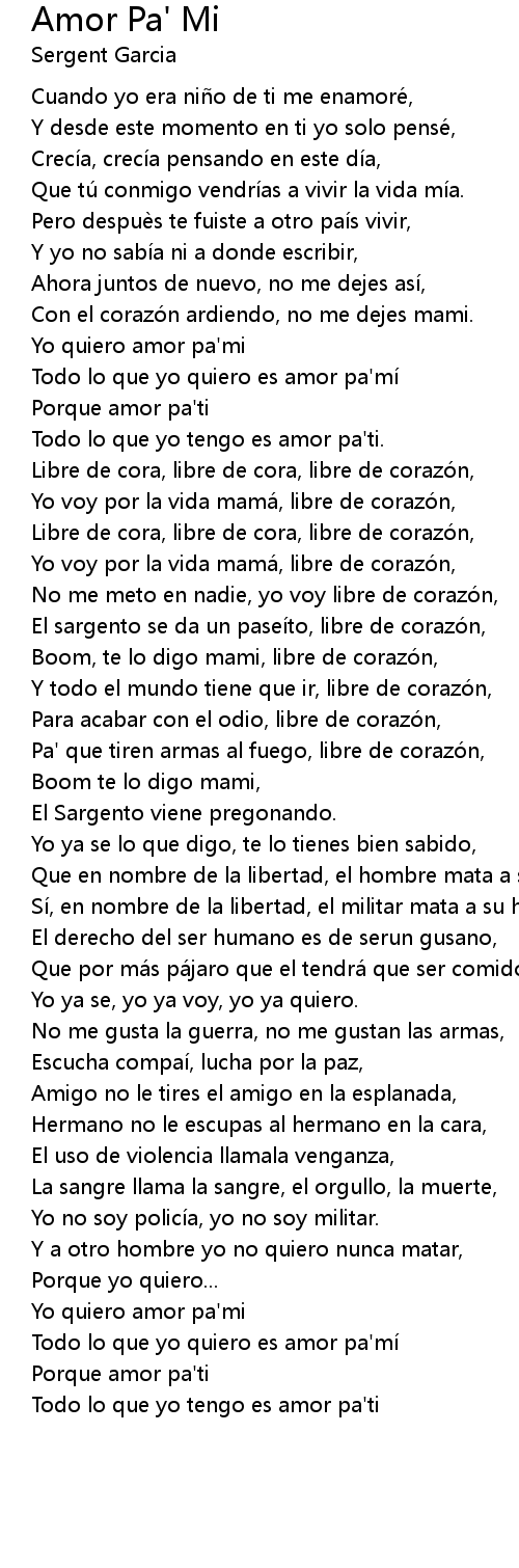 | Libre de cora, libre de cora, libre de corazó n, | |