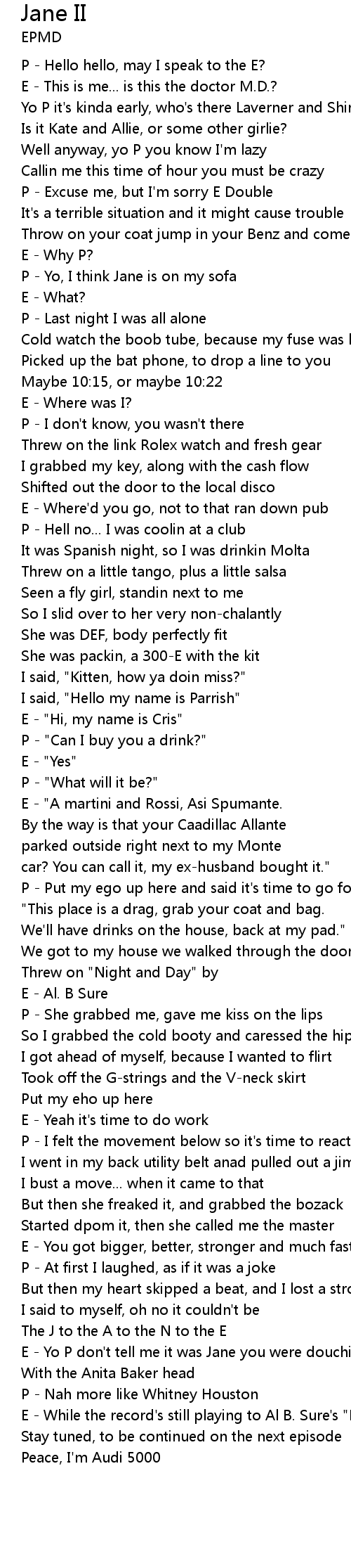 E - Yo P don't tell me it was Jane you were douchin |
