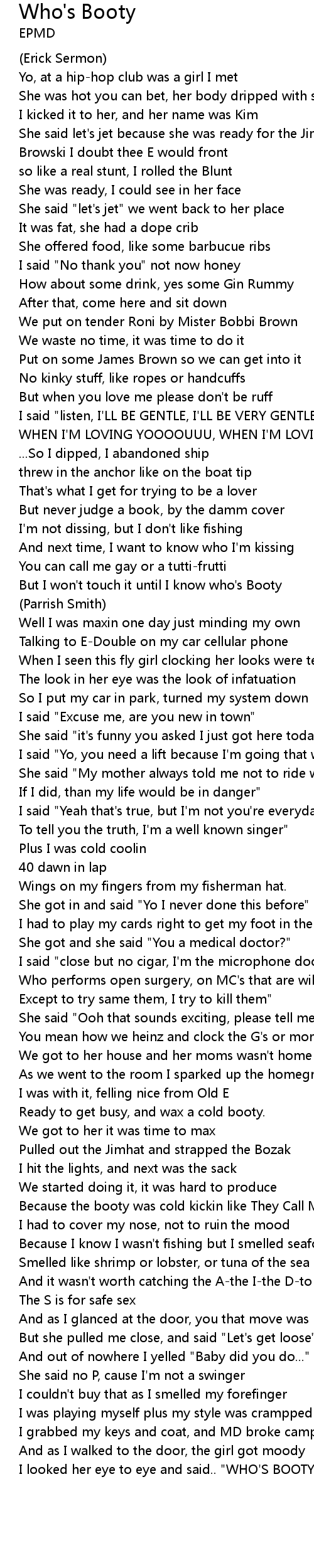 I looked her eye to eye and said.. "WHO'S BOOTY" |