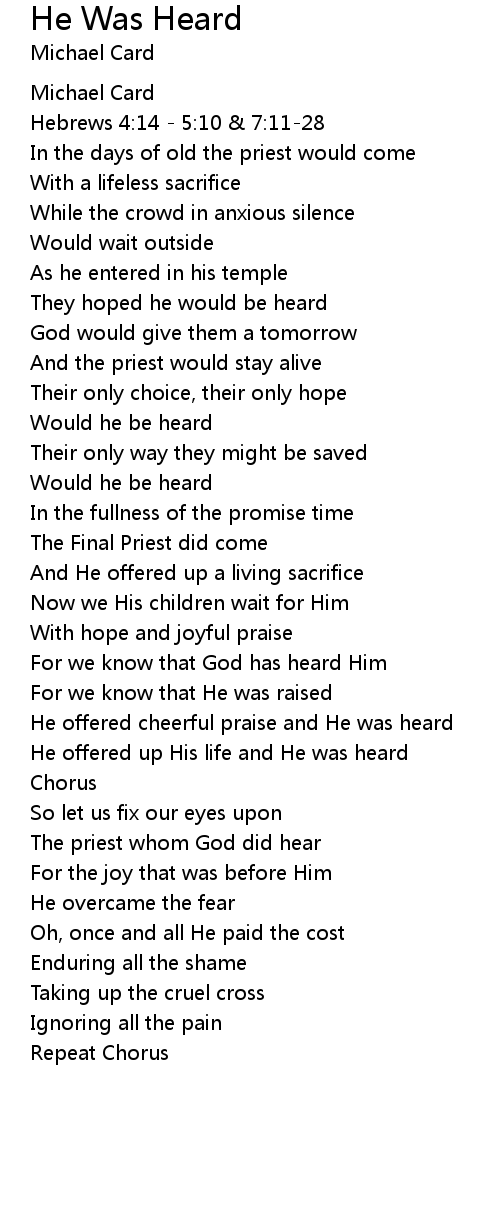 The priest whom God did hear |