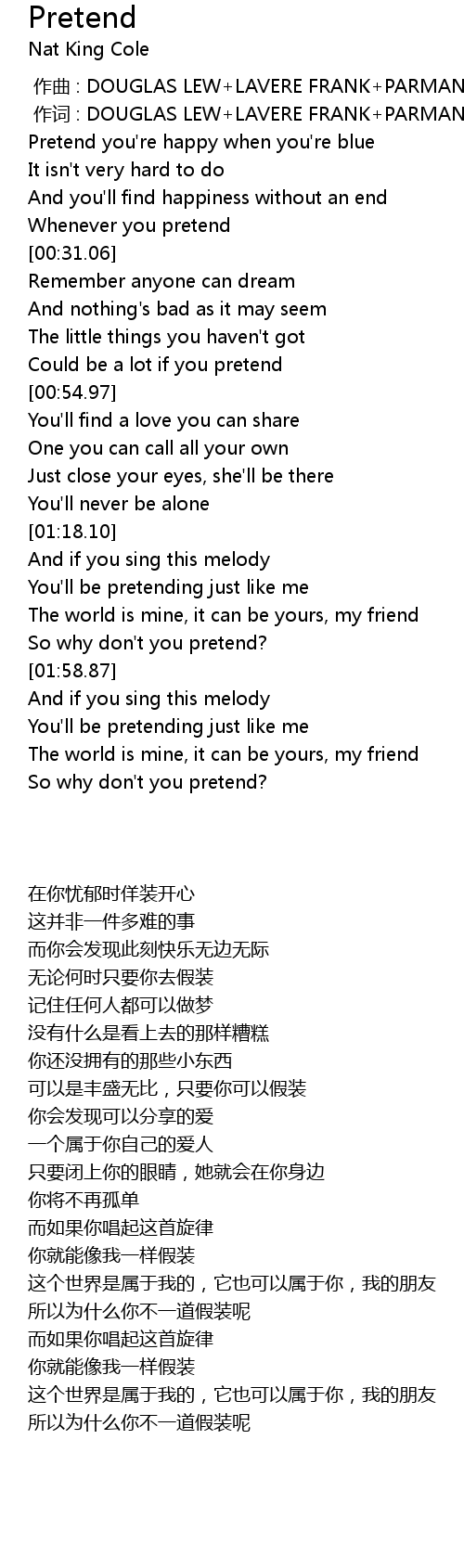 | [02:10.58] | You'll be pretending just like me |