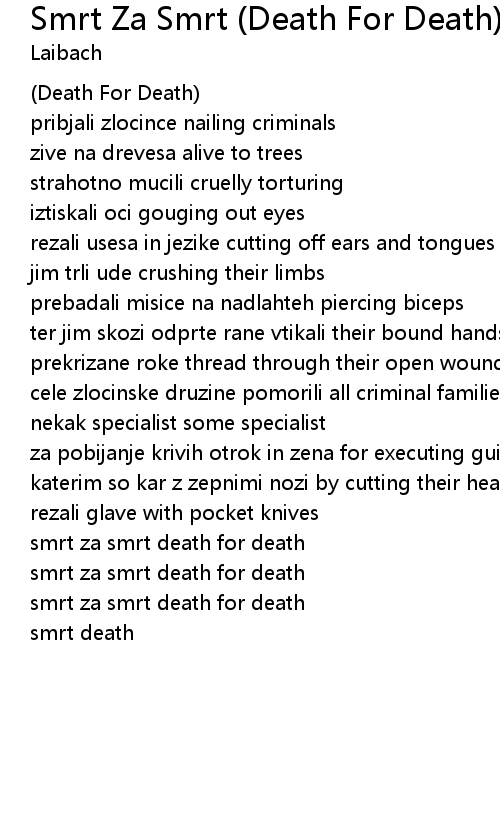 smrt za smrt death for death |