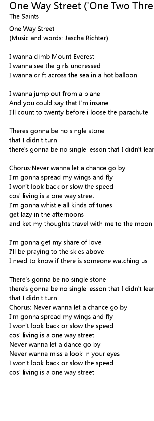 | cos' living is a one way street | |
