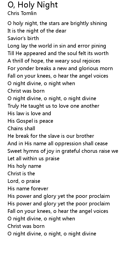O holy night, the stars are brightly shining |