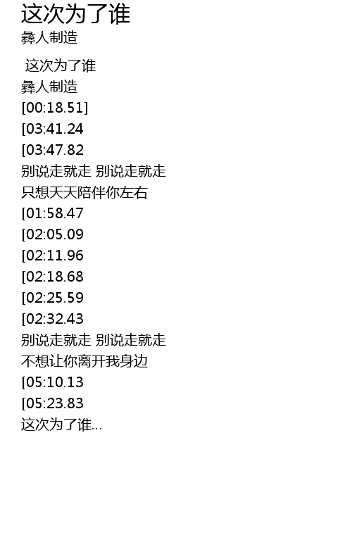 | [04:42.85][03:41.24][01:27.39][01:13.58] | 这次为了谁 这次为了谁 |