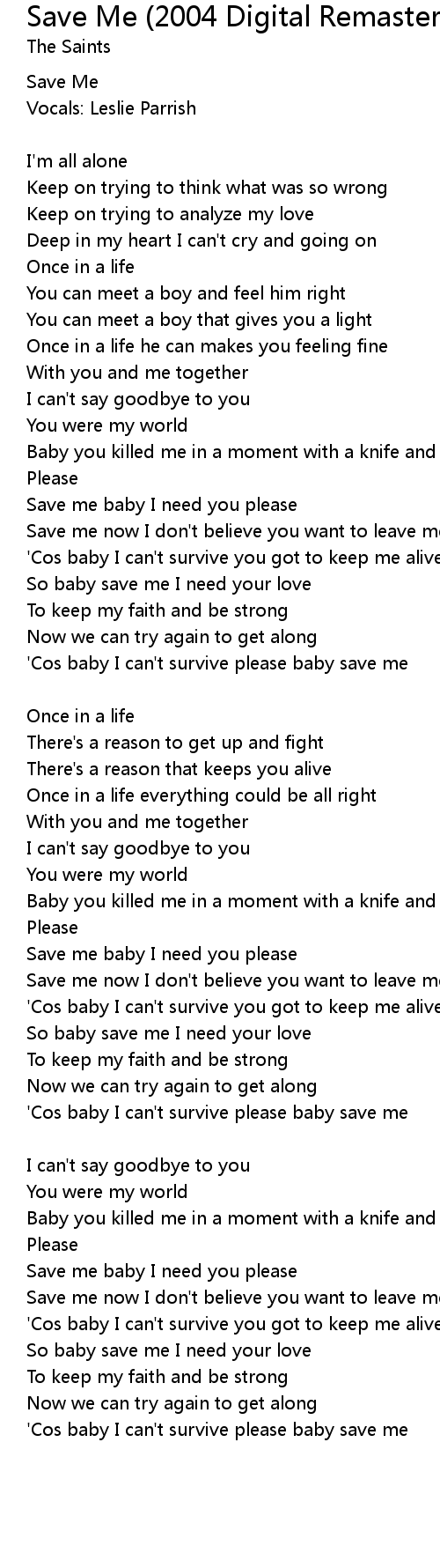 'Cos baby I can't survive please baby save me |
