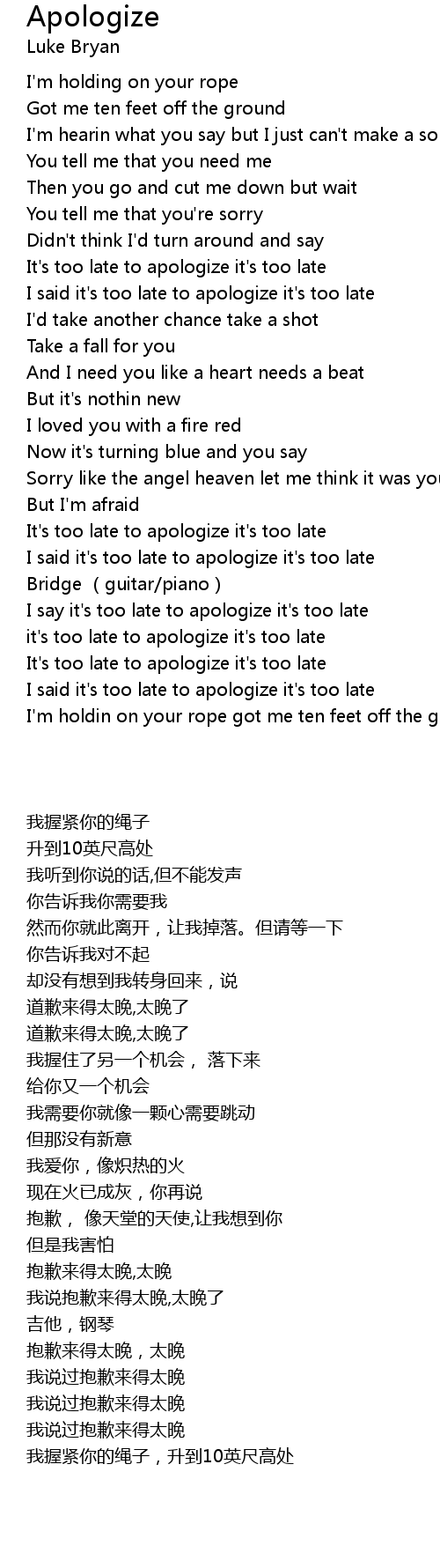 | [02:03.530] | I say it' s too late to apologize it' s too late |