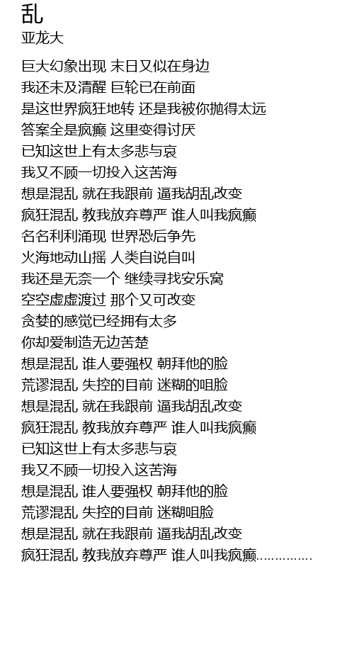 | 疯狂混乱 教我放弃尊严 谁人叫我疯癫…………… |