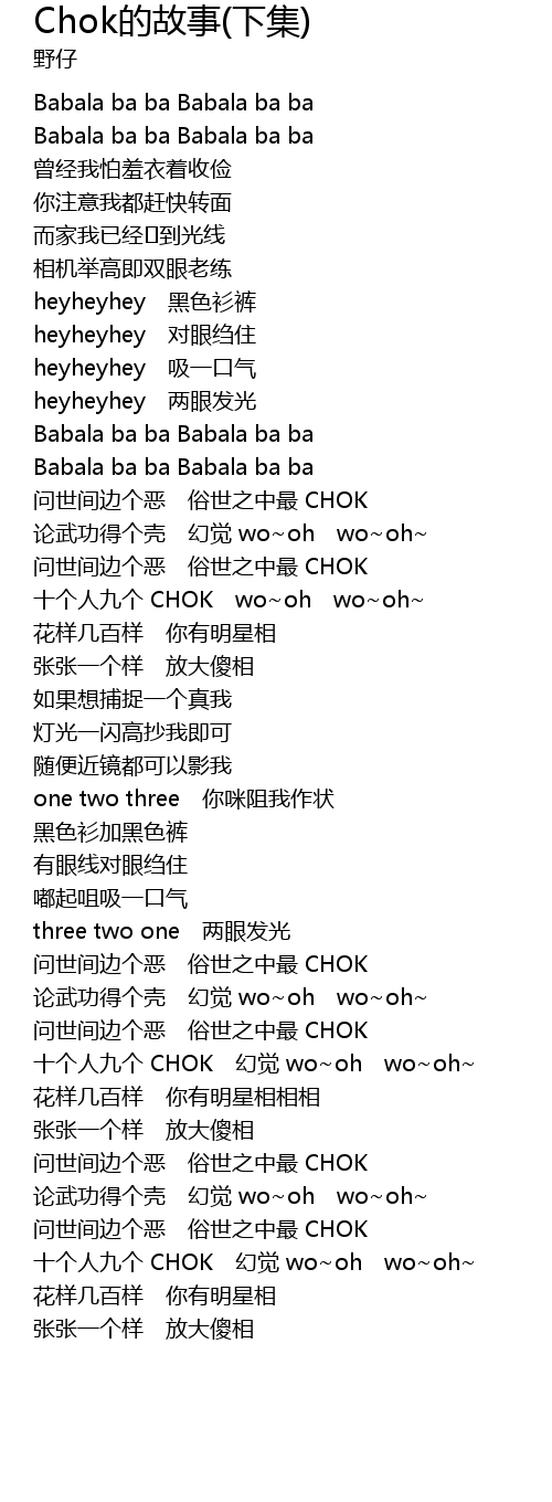 | [01:35.59] | 十个人九个 CHOK wo~oh wo~oh~ |