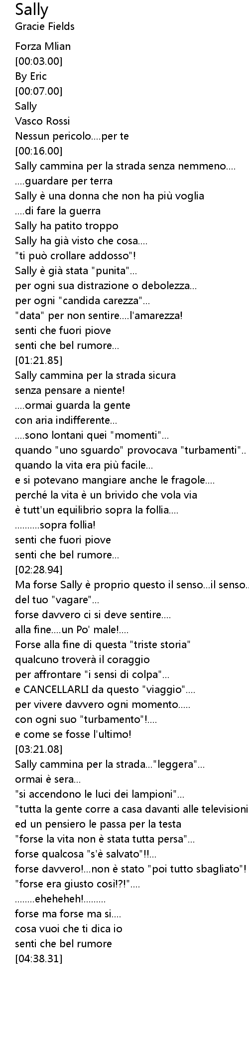 | [03:34.48] | Sally cammina per la strada..." leggera"... |