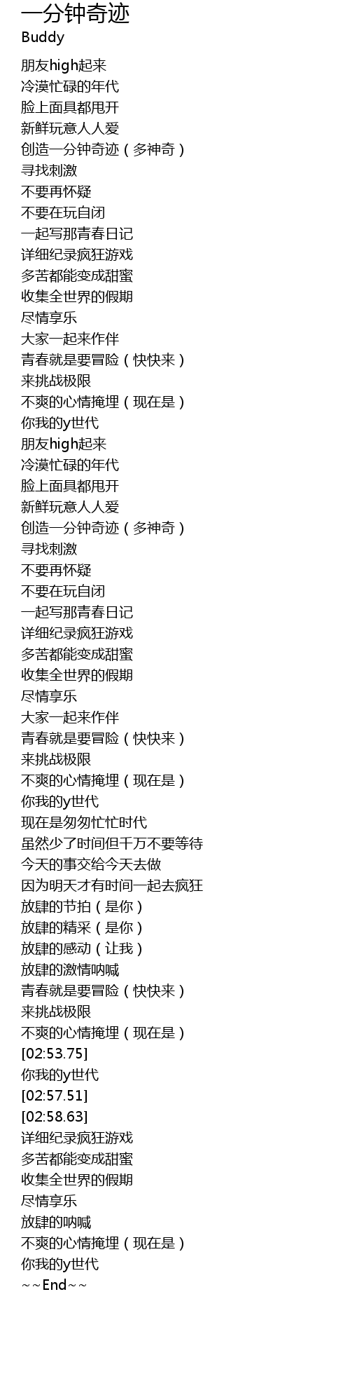 | [01:34.49] | 创造一分钟奇迹(多神奇) |