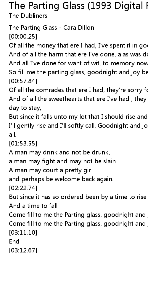 [02:53.79] Come fill to me the Parting glass, goodnight and joy be with you all.