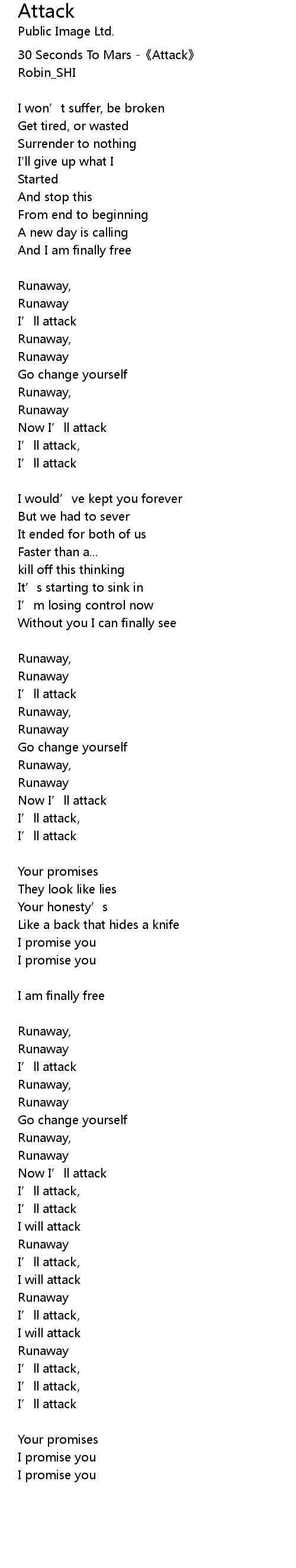 | 30 Seconds To Mars -《Attack》 | |