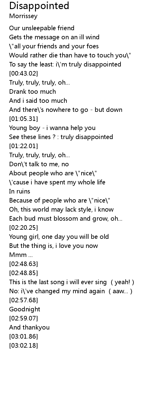 | [00:38.58] | To say the least: i' m truly disappointed |
