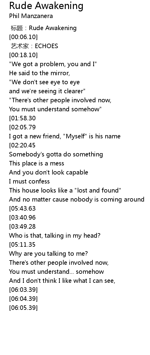 | [00:00.00] | biāo tí: Rude Awakening |